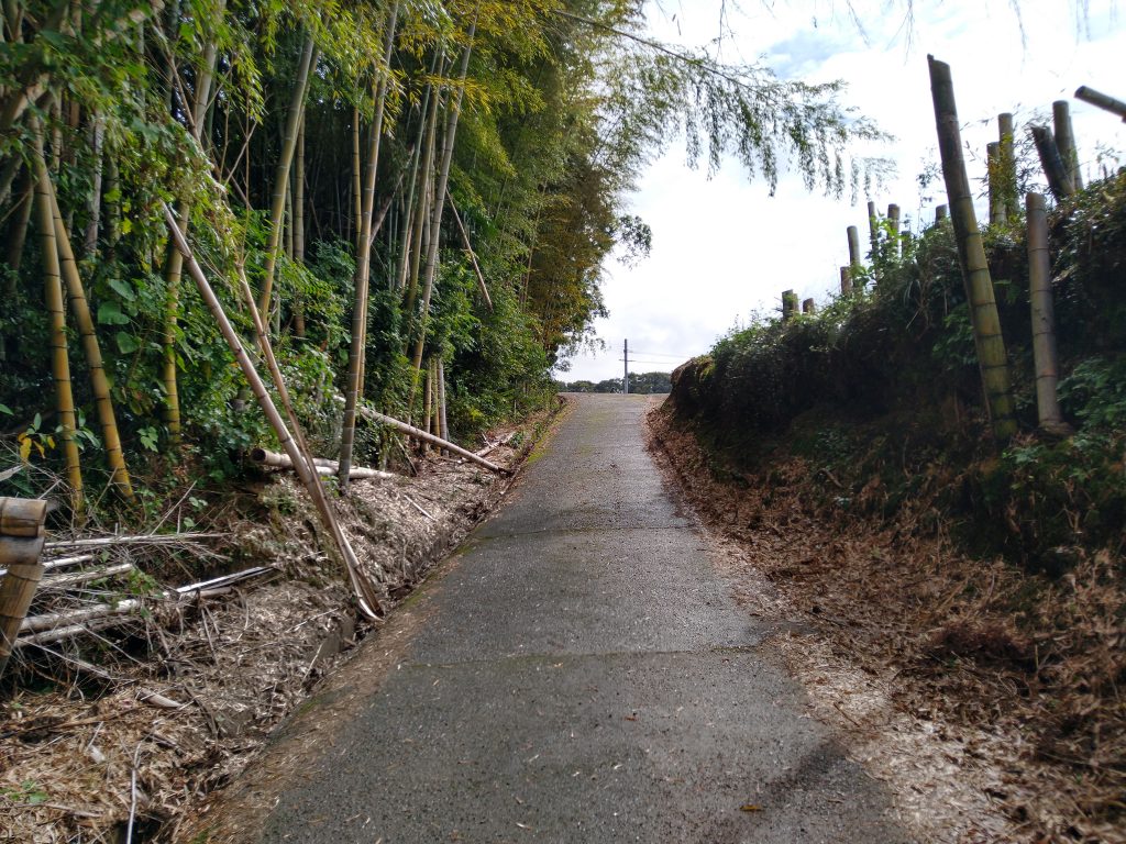 先日の台風の影響を受けたのか、竹の倒れこみ方がすごいです。